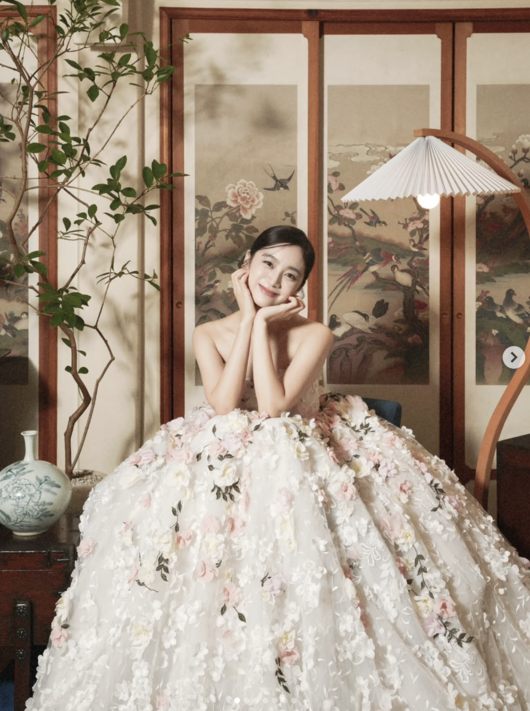 공개된 사진에서 혜림은 풍성한 플라워 레이스 소재의 드레스를 선택해 우아한 자태를 드러냈다. 또 다른 사진에서는 수트를 입은 남편의 팔짱을 낀 채 다시 찍은 결혼사진의 느낌을 더했다.