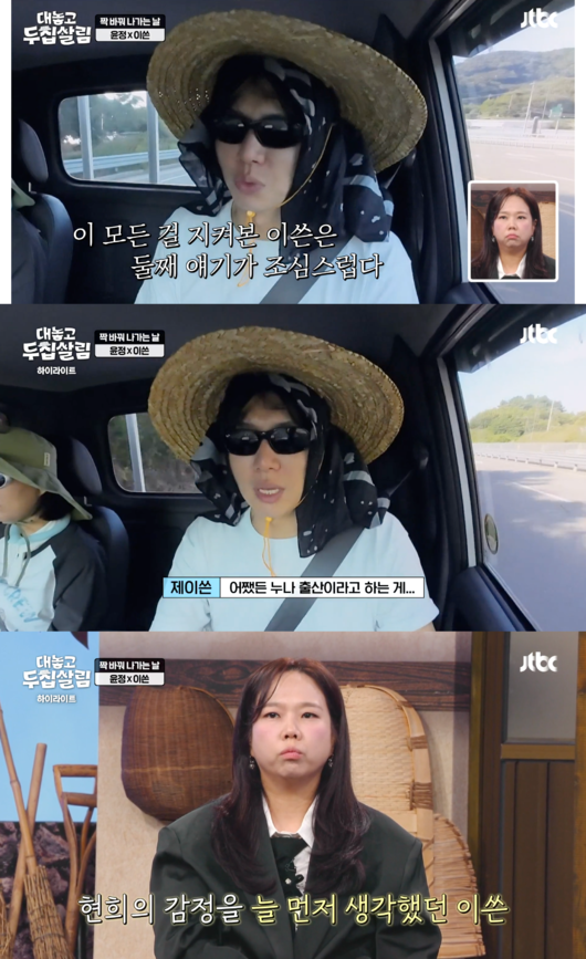 하지만 현실은 그렇지 않은 상황. 제이쓴은 장윤정에게 “그래서 둘째는 조심스럽다. 또 다시 아내가 힘들어질까 봐 걱정된다”고 솔직한 속내를 전했다. 이에 홍현희도 “맞다. 이쓴 씨가 그랬다”며 남편의 배려를 인정했다.