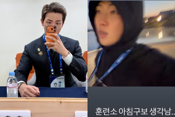 공개된 사진 속에는 RM이 '2025 아시아태평양경제협력체(APEC)'가 열리는 경주에서 아침을 맞은 모습이 담겨 있다. RM은 "훈련소 아침구보 생각남"이라며 가벼운 조깅을 선보였고, 기조연설 직전에는 멋진 슈트를 갖춰입은 인증샷을 공개해 시선을 사로잡았다.