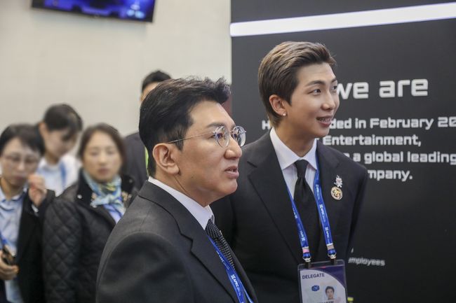이날 자리에는 방시혁 의장과 'APEC CEO 서밋' 기조연설자로 나서는 RM이 함께 참석해 눈길을 끌었다.