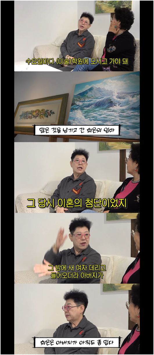 양희은은 첫 딸로서 어머니에게 가진 연민과 애정을 드러냈다. 그럴 수밖에 없었던 이유는 바로 아버지의 제멋대로 이혼 때문이었다. 양희은은 “우리 엄마랑 아버지는 사이가 안 좋다. 이혼의 첨단이다. 1970년대에는 이혼이 없었다. 엄마가 화딱지가 나서 친정에 간다고 나왔더니 그 밤에 아버지가 새 여자 데리고 오더라. 아버지가 미쳤다”라면서 “그렇게 이혼이 되어버렸다. 한이 있다. 엄마께서는 ‘내가 참을걸’이러면서 한이 됐더라. 할머니 할아버지들 손 잡고 다닐 때마다 후회하더라”라며 어머니의 생을 안타까워했다.