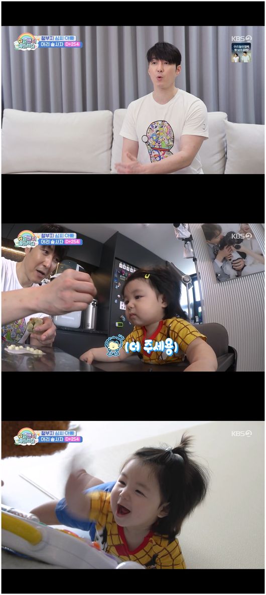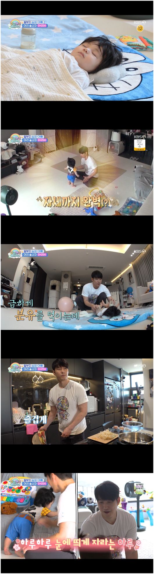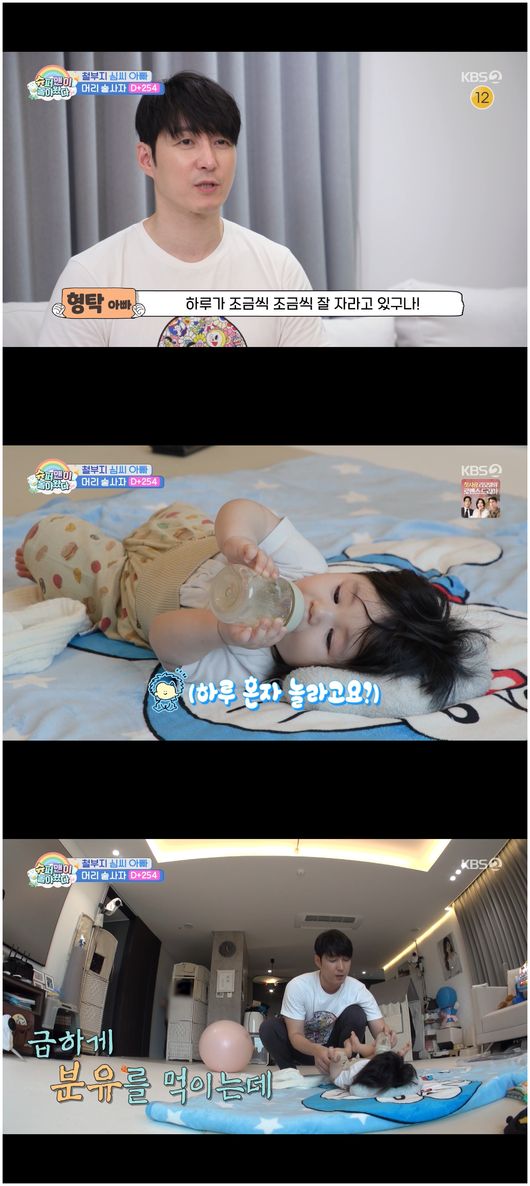 한편 심형탁은 아들 하루의 자라는 모습에 감격을 금치 못했다. 하루를 위한 치즈, 빵 등을 만드는 심형탁은 어느새 자기 스스로 앉은 하루를 보고 깜짝 놀랐다. 심형탁은 “앉는 것도 아직 못하는 줄 알았는데 꼿꼿하게 앉아있더라. 우리 아이가 또 한 떡대 하지 않냐. 늠름해 보이더라”라며 벅차올랐다.