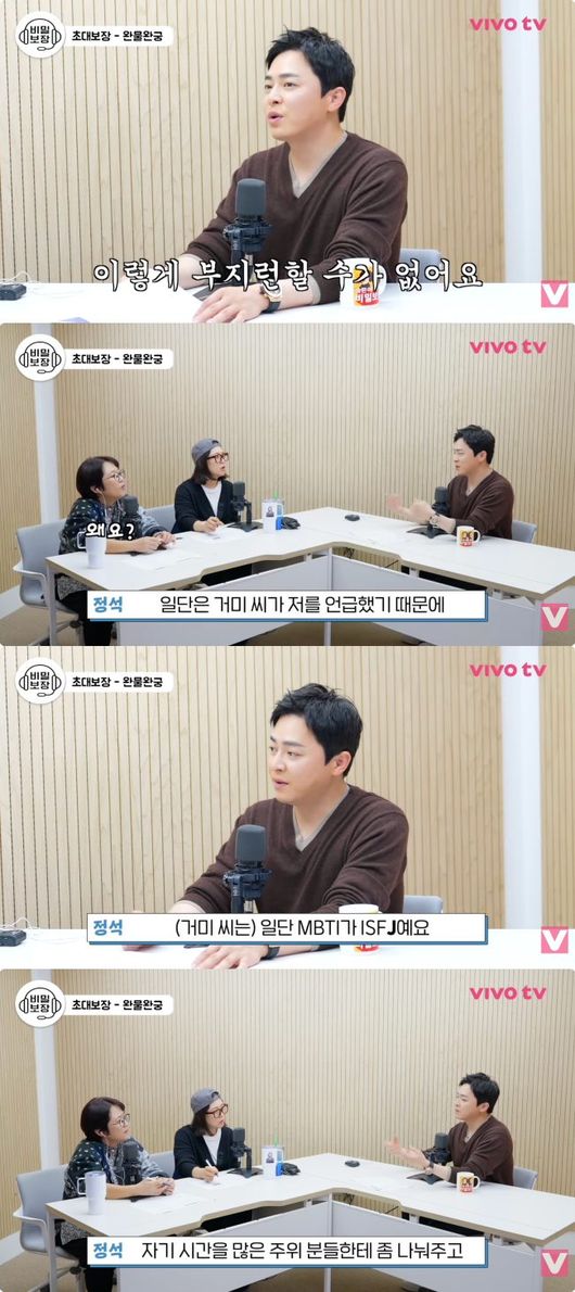 이에 조정석은 “일단 거미 씨처럼은 못 산다. 이렇게 부지런할 수가 없다. 일단 MBTI가 ISFJ다. 나랑 하나 다른데, 자기 시간을 많은 주위 분들한테 좀 나눠주고 그런 분이다. 내가 만약 하루만 거미 씨처럼 살 수 있을까 생각했다”라고 밝혔다.