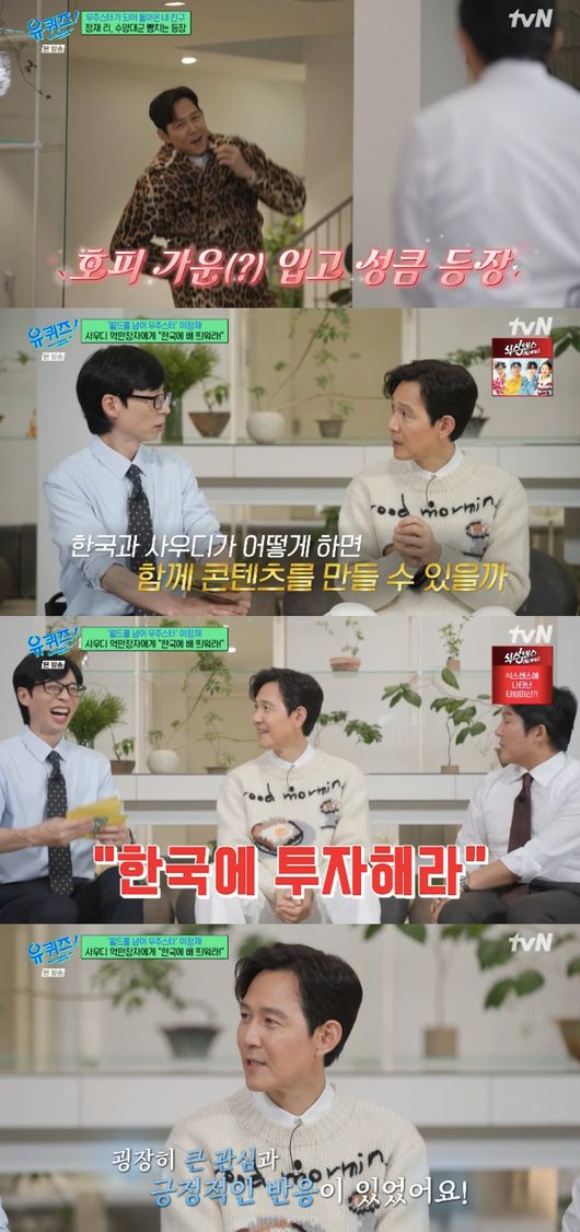 ‘유 퀴즈 온 더 블럭’ 이정재가 사우디아라비아 행사에서 투자 유치를 했다고 밝혔다.