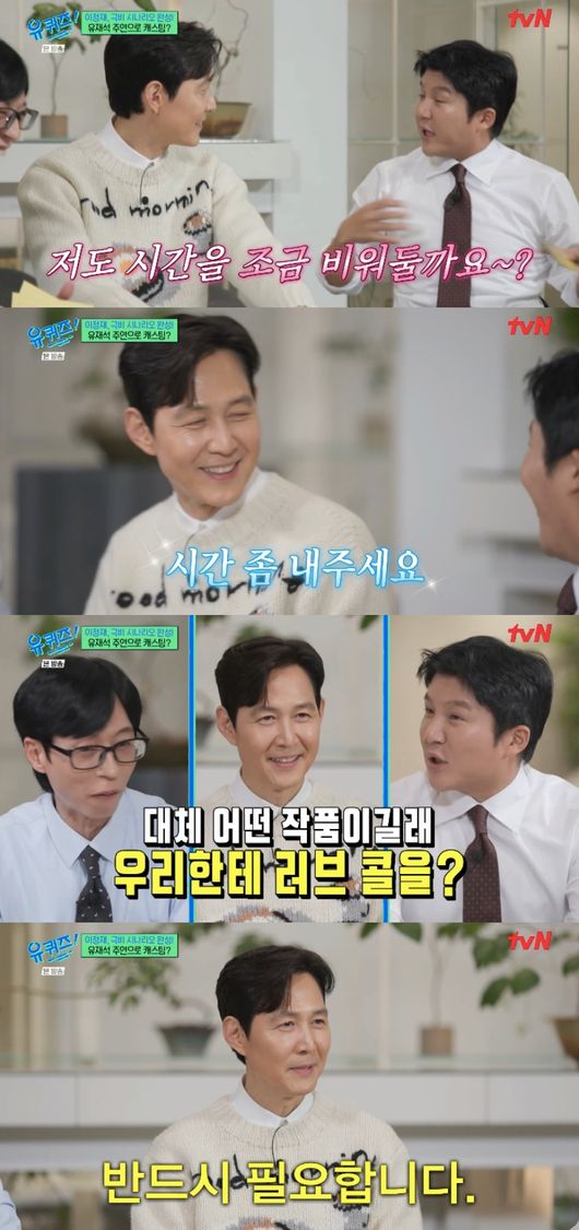 조세호는 “재석이 형도 나올 수 있냐”고 물었고, 이정재는 “충분히”라며 조세호에게도 “시간 내달라. 남자들이 엄청 많이 나오는 장르다. 반드시 필요하다”라고 전했다.
