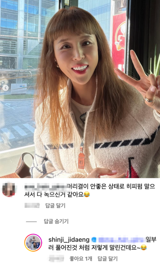 그룹 코요태의 멤버 신지가 자신의 헤어스타일을 지적하는 일부 댓글에 대해 쿨하게 대처했다.
