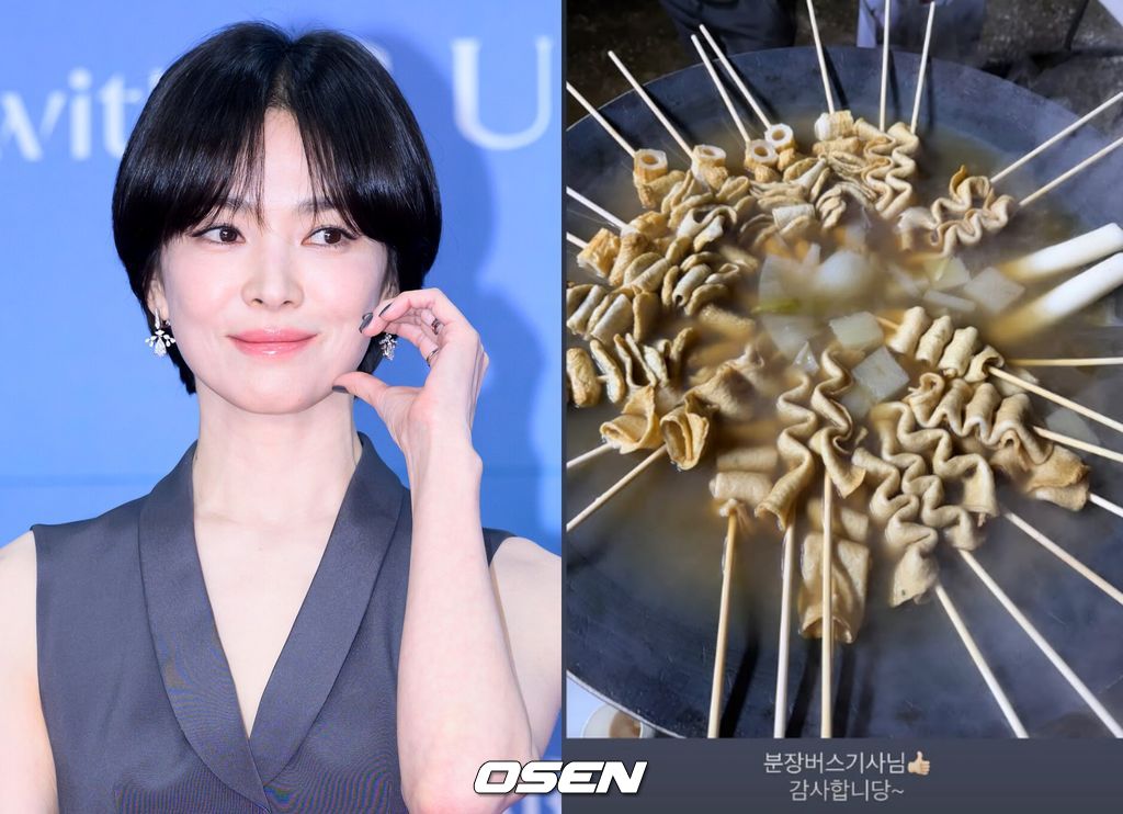 공개된 사진에는 커다란 냄비에 가득 찬 어묵의 모습이 담겨있다. 송혜교가 촬영을 하던 중 간식으로 따뜻한 어묵을 먹고 있는 장면을 찍어 올린 것.
