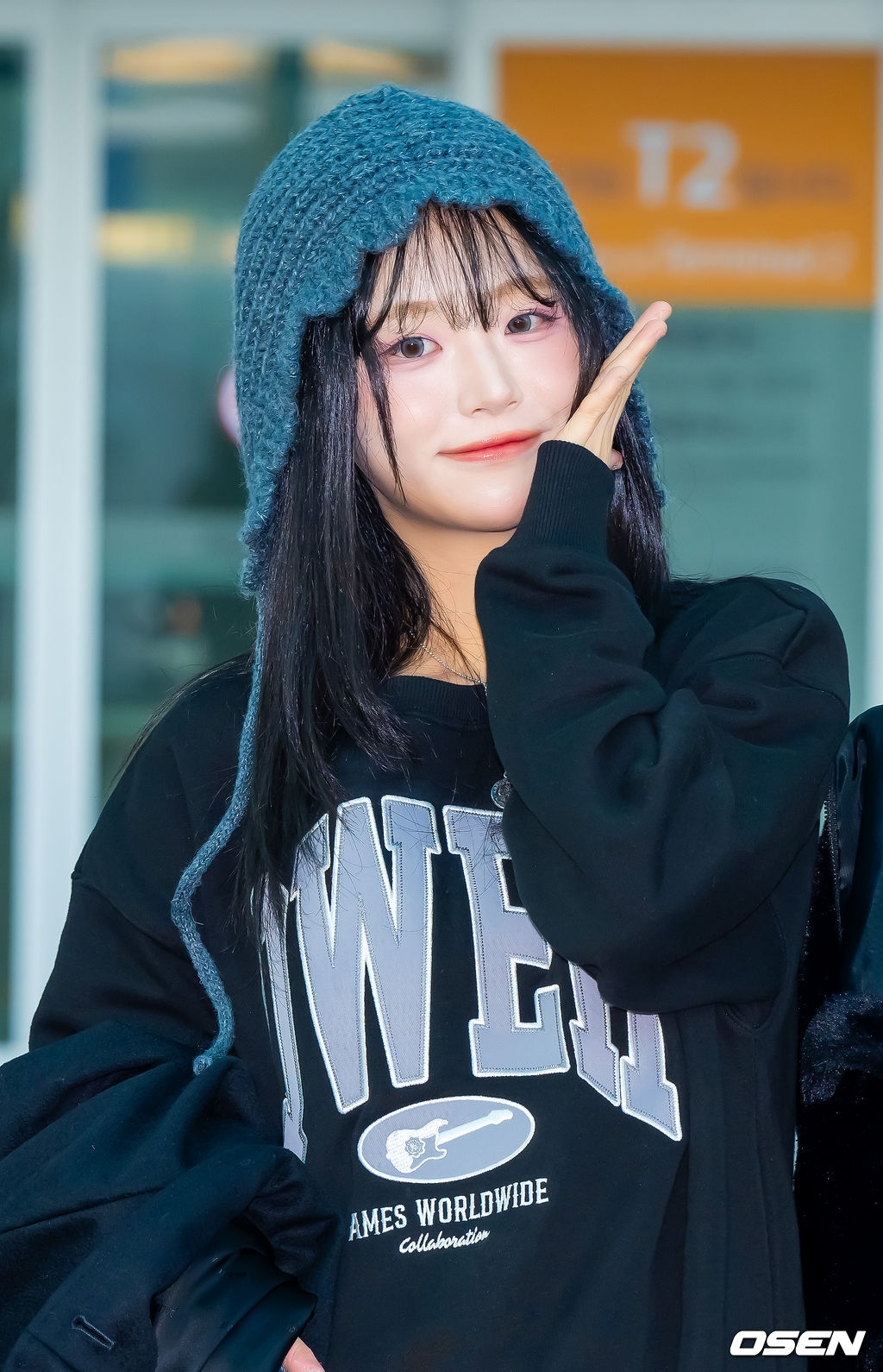 QWER 쵸단이 멤버들과 함께 출국길에 포즈를 취하고 있다. 2025.10.30 / rumi@osen.co.kr
