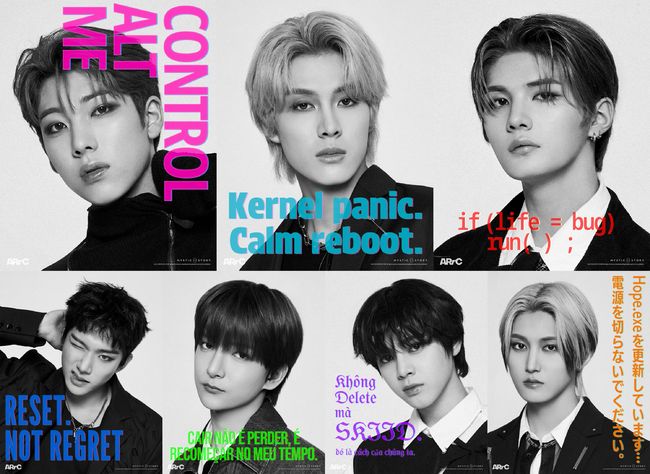 특히, 아크는 앞서 공개된 수록곡 'WoW (Way of Winning) (with 문수아X시윤)' 포토 드롭에서 선보인 자유롭고 세련된 무드와는 상반된 분위기로 반전 매력을 선사했다. 아크는 지금껏 볼 수 없던 거친 분위기로 뛰어난 콘셉트 소화력을 입증했다. 또한 'CONTROL ALT ME', 'Kernel panic. Calm reboot.', 'RESET. NOT REGRET' 등 생소한 시스템 언어로 '재시작'을 나타내는 단어가 영어, 포르투갈어, 일본어, 베트남어로 가득 적혀 있어, 과연 아크의 신보와 어떤 연관이 있는지 보는 이들의 궁금증을 자아낸다.