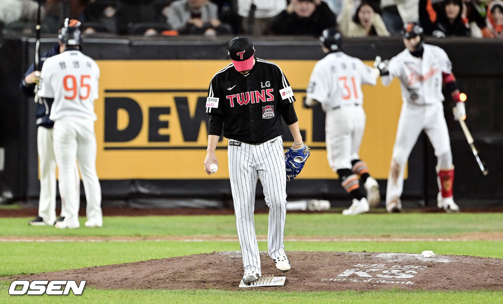 8회말 2사 만루 LG 유영찬이 한화 대타 황영묵에게 동점 밀어내기 볼넷을 허용하고 있다. 2025.10.29 / soul1014@osen.co.kr