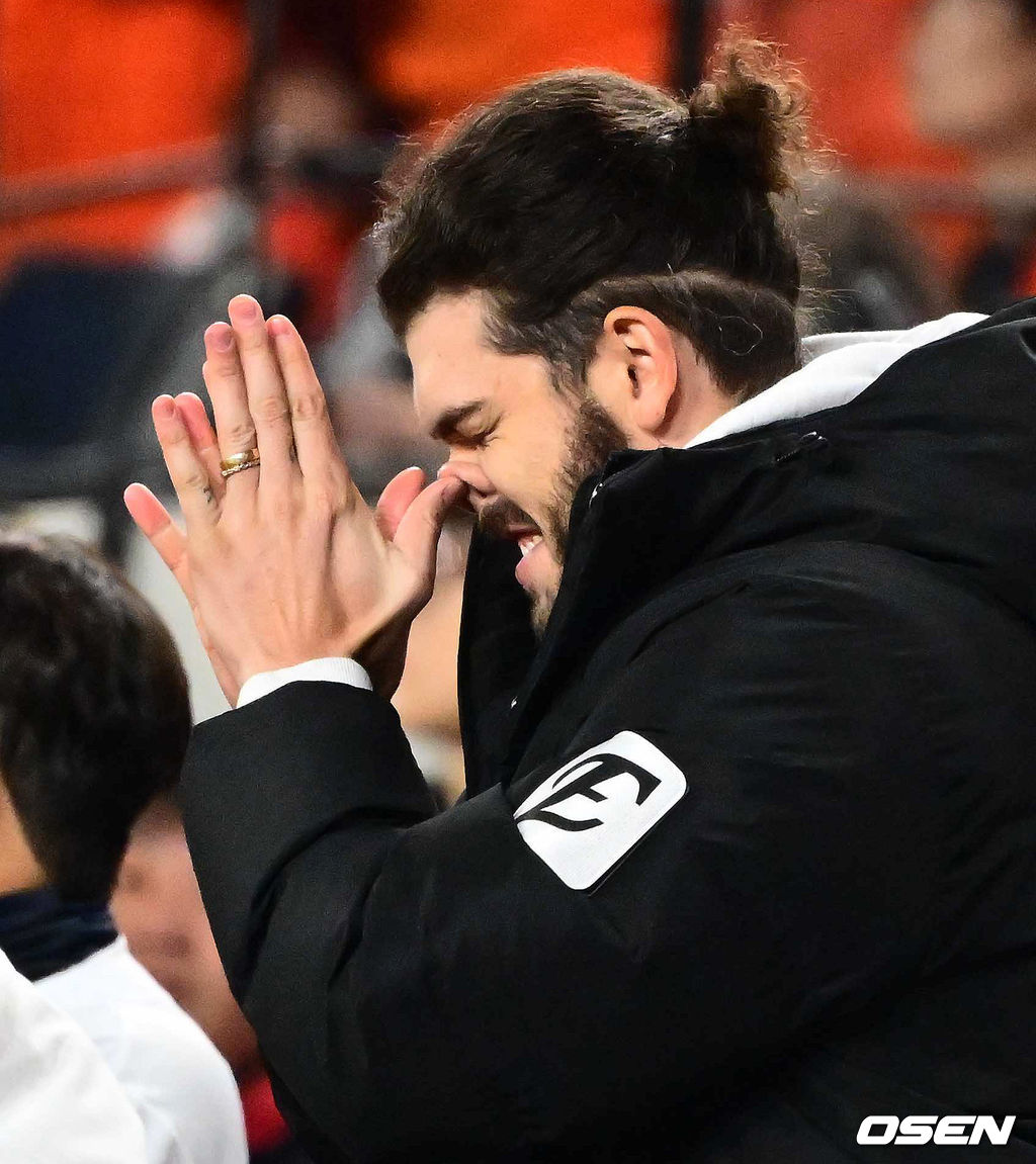 8회말 2사 만루에서 한화 심우준의 역전 2타점 적시 2루타에 더그아웃의 폰세가 기뻐하고 있다. 2025.10.29 /jpnews@osen.co.kr
