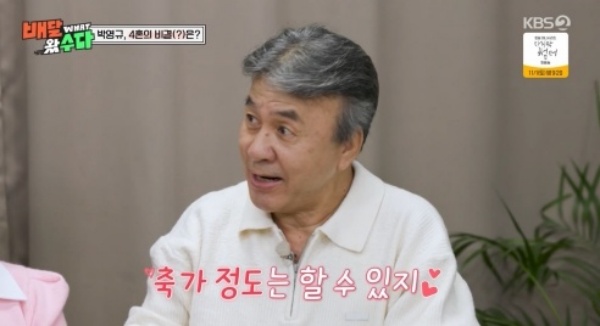 이호선은 건강 프로그램을 함께하고 있는 박영규에 대해 “여러 번 결혼하신 줄 몰랐었다”라며 “느낀 점은 솔직하고, 유머 있고 남을 디스하지 않고 높일 줄 아는 사람”이라고 칭찬했다. 이어 박영규에게 윤정수 칭찬을 요청하자 “정수는 아직 잘 모른다”라고 답해 또 한 번 폭소를 유발했다. 그럼에도 윤정수가 초대하면 결혼식에 참석하겠다고 밝힌 박영규는 “혹시 뭐 주례 봐달라 그런 건 아니지”라며 “내가 어떻게 주례를 보니. 결혼식 망칠 일 있냐”라고 농담했다. 대신 “축가는 가능하다”라고 즉석에서 노래 한 소절을 불러 훈훈한 분위기를 자아냈다.