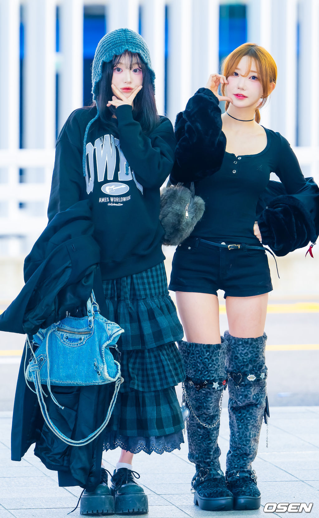 QWER 쵸단과 마젠타가 출국길에 포즈를 취하고 있다. 2025.10.30 / rumi@osen.co.kr