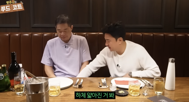 30kg이 빠진 것으로 알려진 현주엽은 다소 야윈 모습으로 등장했고 안정환은 "살 왜 이렇게 빠진거야. 보고 싶었다. 전화하면 맨날 병원에 있다고 하더라. 속상했다"라고 털어놨다. 현주엽이 유튜브를 다시 하길래 "보고도 싶고 나 거기 나가면 안 되냐"라고 연락했다고. 현주엽은 "이런 친구가 어딨냐"라며 고마움을 드러냈다.