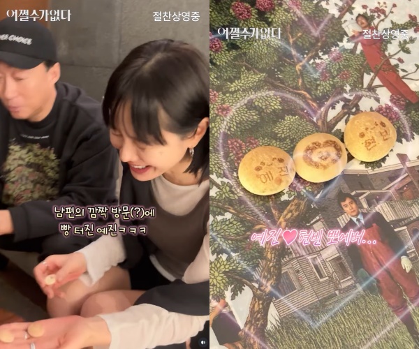 쌓여가는 칸쵸를 보던 손예진은 "이거 찾기가 쉽지 않겠다"고 걱정했고, 바로 그때 이성민이 '예진'을 찾았다. 이에 손예진은 예진 칸쵸를 들고 인증샷을 남겼고, 연이어 의문의 칸쵸가 발견됐다. 손예진의 남편 현빈의 이름이 적힌 현빈 칸쵸가 나온 것. 남편의 깜짝 방문에 빵터진 손예진은 웃음을 멈추지 못했고, '예진♥현빈' 칸쵸가 완성돼 시선을 사로잡았다.