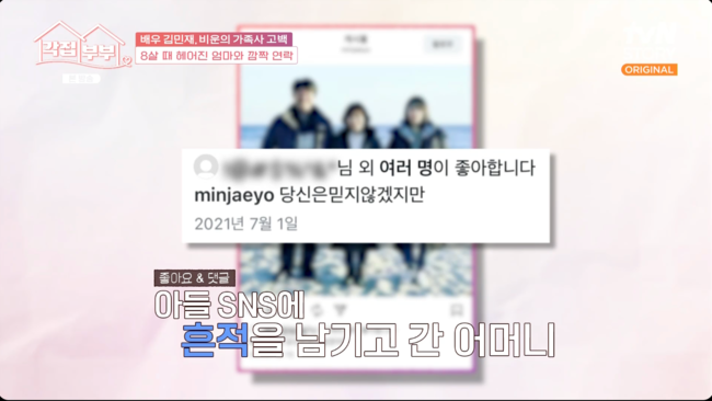 김민재는 SNS를 하던 중 "댓글로 '팬이에요'라는 글이 있어서 엄마라는 느낌이 있었다. 그래서 (확인하러) 갔는데 맞았다"고 말해 모두를 놀라게 했다. 어머니는 아들에게 '팬'으로 접근해 재회를 시도했던 것이다.