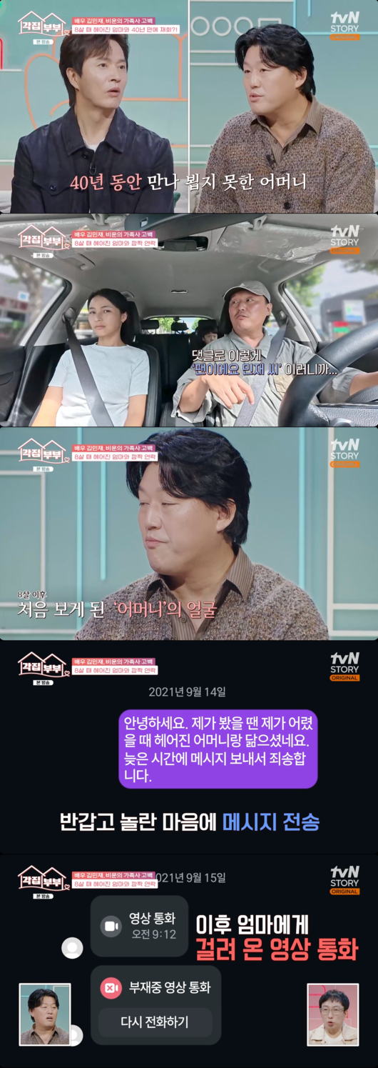 '각집부부’ 김민재가 8살 이후 40년 가까이 단절되었던 친어머니와의 가슴 아픈 가족사를 고백했다.