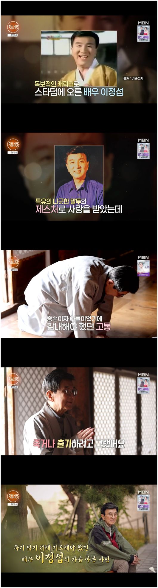 30일 방영한 MBN ‘특종세상’에서는 배우 이정섭이 근황을 전했다. 한동안 방송 활동을 쉬고 있었지만, 그는 10년 전까지 활발한 방송 활동을 이어나갔다. 독특한 목소리와 고운 느낌의 행동으로 많은 사람의 시선을 받았던 그는 촌철살인의 멘트로 예능에서도 반기는 배우였다.