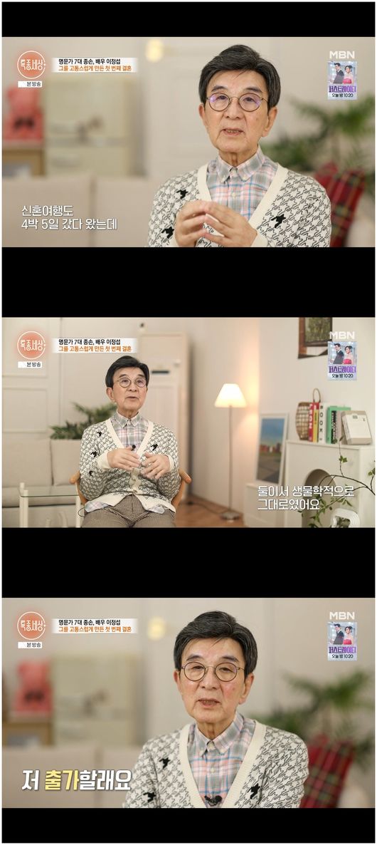 무엇이 그를 이토록 차분하고 정결하게 만들었을까? 그는 사실 집안의 권유가 아니었더라면 일평생 독신으로 살았을 거라고 밝혔다. 종갓댁 종손으로 태어나 스물다섯부터 결혼을 요구당했던 그. 그러나 결혼생활은 원만하지 않았다. 이정섭은 “집에서 스물다섯부터 그렇게 결혼을 시키려고 했다. 초혼을 했다. 첫 번째 결혼을 했는데, 신혼여행 4박5일 다녀왔지만 서로 그대로였다. 동물이 아니니, 마음의 속정이 생길 때까지 각방을 썼다”라며 결국 이혼까지 치달았다고 말했다.