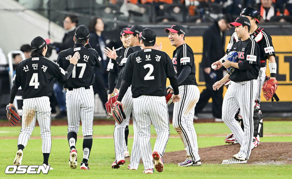 경기종료 후 LG 선수들이 눈물 보인 박해민과 승리의 기쁨을 나누고 있다. 2025.10.30 / soul1014@osen.co.kr