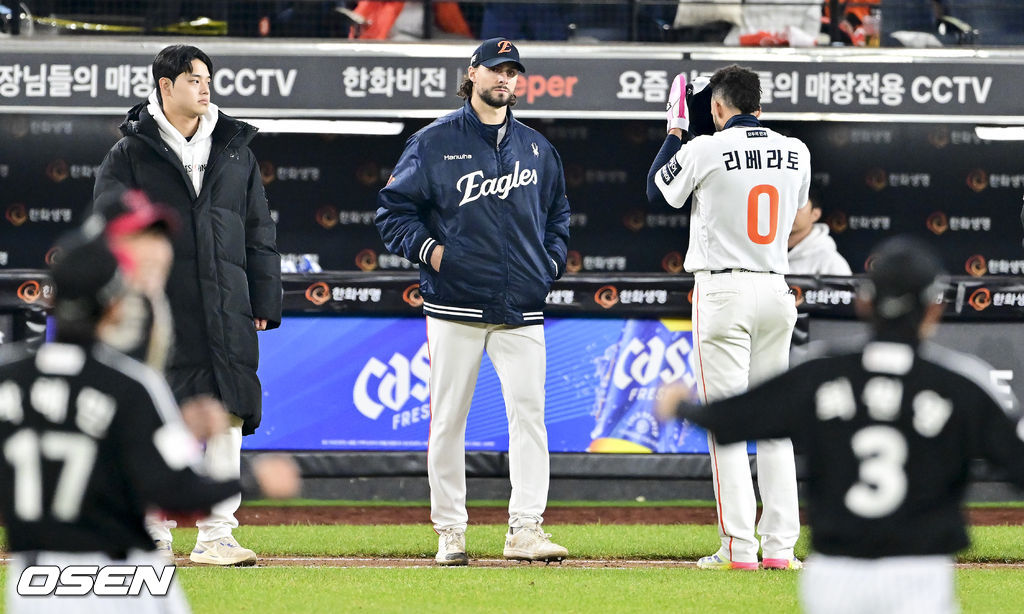 경기종료후 한화 와이스가 기뻐하는 LG 선수들을 바라보고 있다. 2025.10.30 / soul1014@osen.co.kr