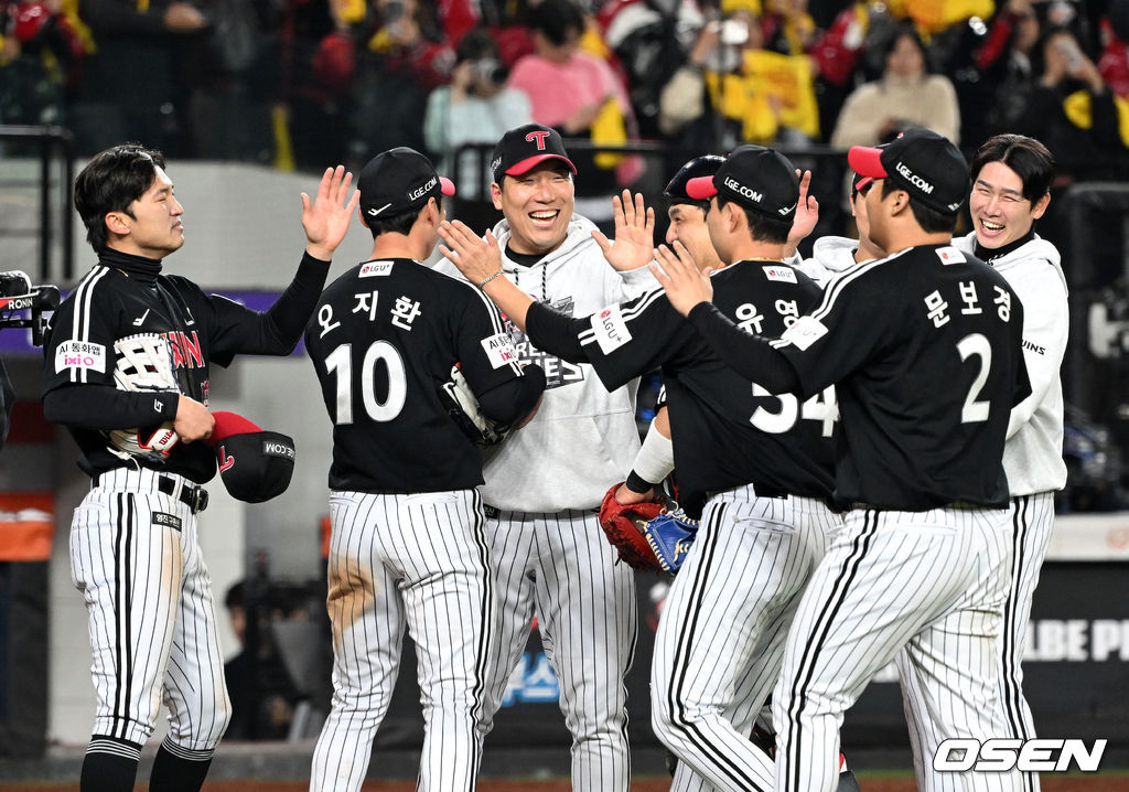 경기 종료 후 LG 선수들이 승리의 기쁨을 나누고 있다. 2025.10.30 /sunday@osen.co.kr