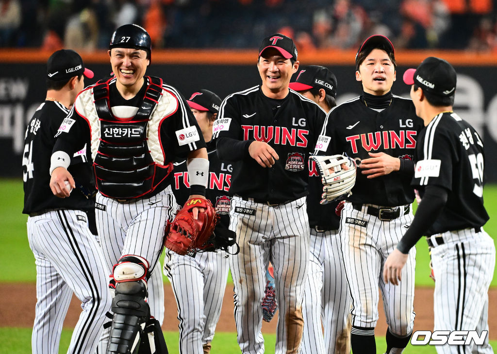 경기를 마치고 LG 선수들이 승리를 기뻐하고 있다. 2025.10.30 /jpnews@osen.co.kr