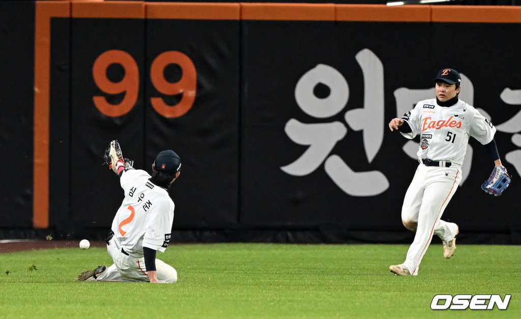 9회초 2사 3루에서 한화 심우준이 LG 오스틴의 타구를 놓치고 있다. 2025.10.30 /sunday@osen.co.kr
