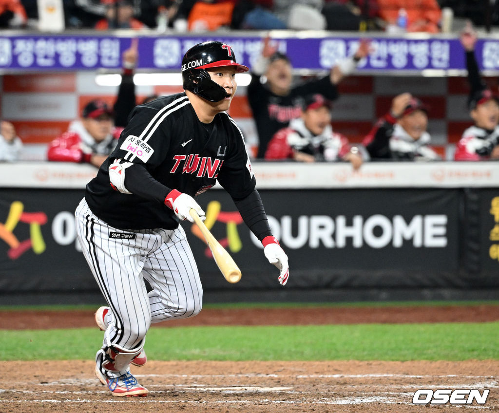 9회초 2사 1루에서 LG 문보경이 우월 적시 2루타를 치고 있다. 2025.10.30 /sunday@osen.co.kr