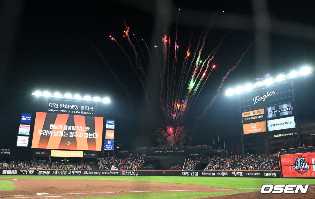 경기 종료 후 불꽃쇼가 진행되고 있다. 2025.10.30 /sunday@osen.co.kr