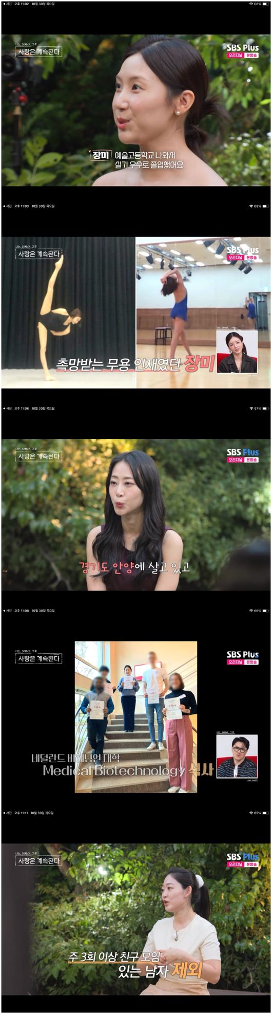 장미는 “저는 91년생, 서울에 살고 있습니다. 저는 무용을 전공했고, 예고에서 무용으로 수석으로 졸업했다. 한양대학교 무용학과 장학 입학했다. 현재 무용을 바탕으로 현재 필라테스 강사로 일하고 있다”라며 단아한 외모의 이유를 설명하는 자기소개로 포문을 열었다. 강사로 활약하는 만큼 시원시원한 어조로 말하는 그의 기세에 처음에는 외모 하나를 보고 눈이 멀었던 남성들은 차례로 고개를 숙였다.