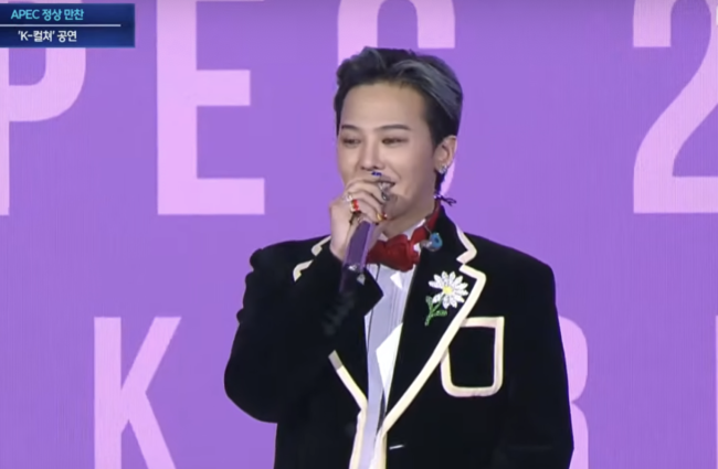 지난 29일 경주 라한호텔에서 열린 ‘APEC 정상회의 환영 만찬’*에서 지드래곤은 K팝 아티스트 중 유일하게 초청받은 공연자로 무대에 섰다. ‘APEC 2025 코리아 홍보대사, 가수 지드래곤입니다’라는 짧은 인사 후 시작된 무대는 완벽했다. 강렬한 비트와 무대 연출, 그리고 특유의 카리스마는 세계 정상들의 시선을 단숨에 사로잡았다.