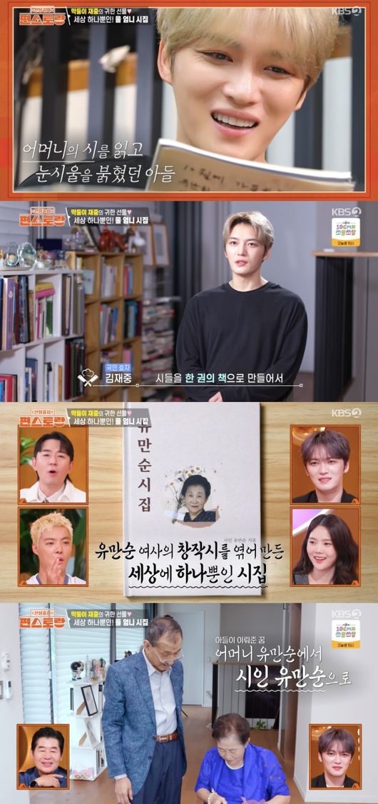 31일 방송된 KBS 2TV 예능 ‘신상출시 편스토랑’(이하 ‘편스토랑’)에서는 김재중이 어머니에게 세상에 단 한 권 뿐인 시집을 만들어 선물하는 모습이 그려졌다.