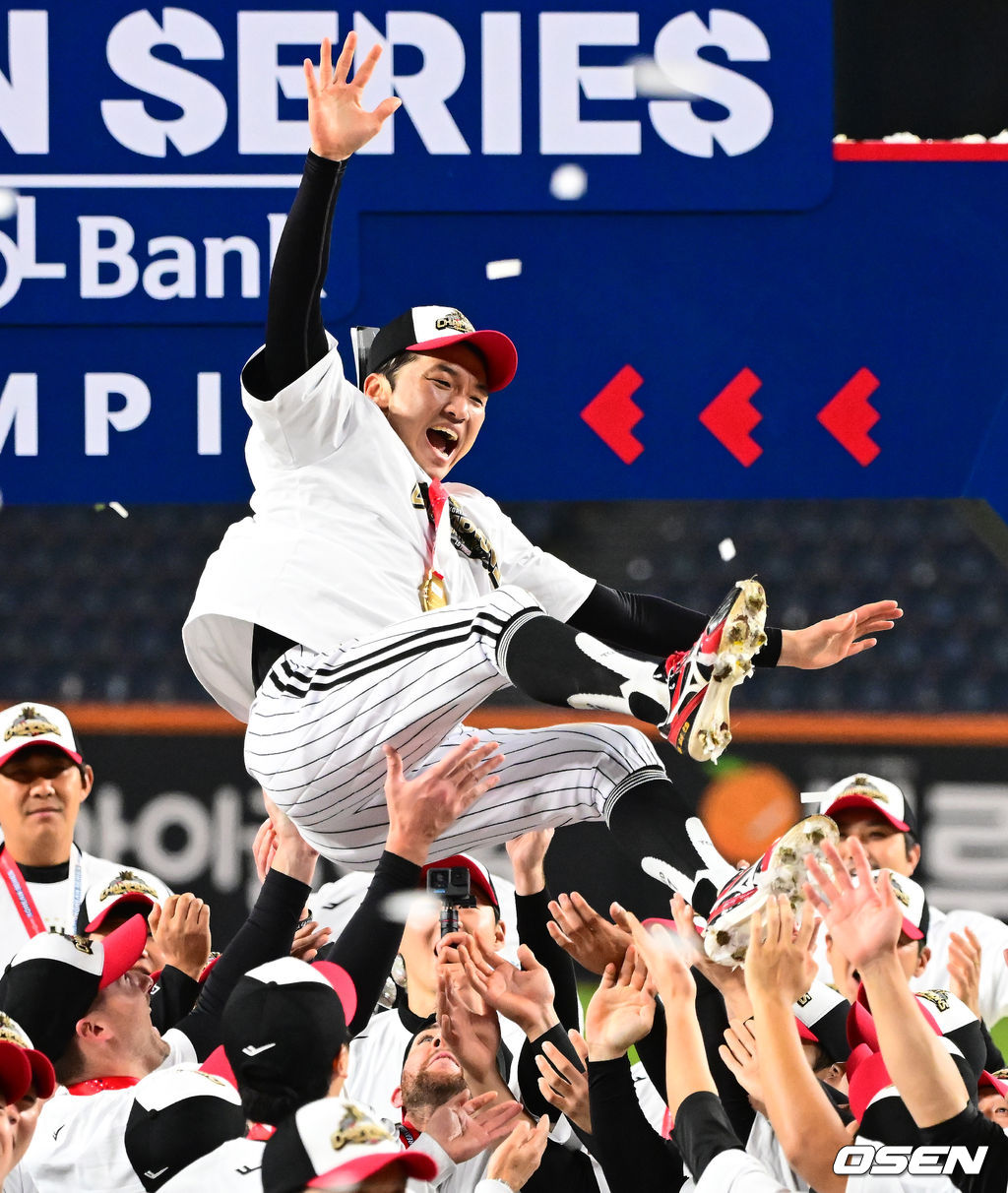 LG 주장 박해민이 헹가래를 받고 있다. 2025.10.31 /jpnews@osen.co.kr
