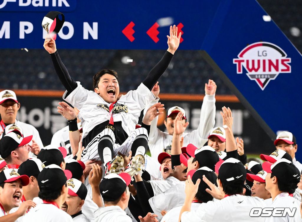 LG 주장 박해민이 헹가래를 받고 있다. 2025.10.31 /jpnews@osen.co.kr