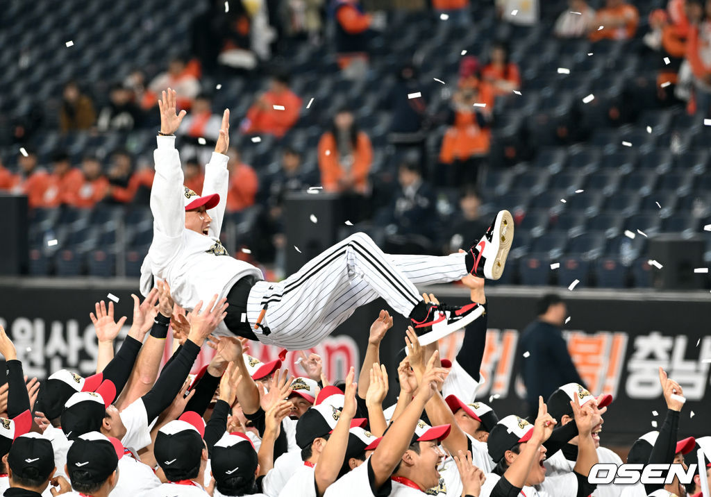 LG 염경엽 감독이 헹가래를 받고 있다. 2025.10.31/spjj@osen.co.kr