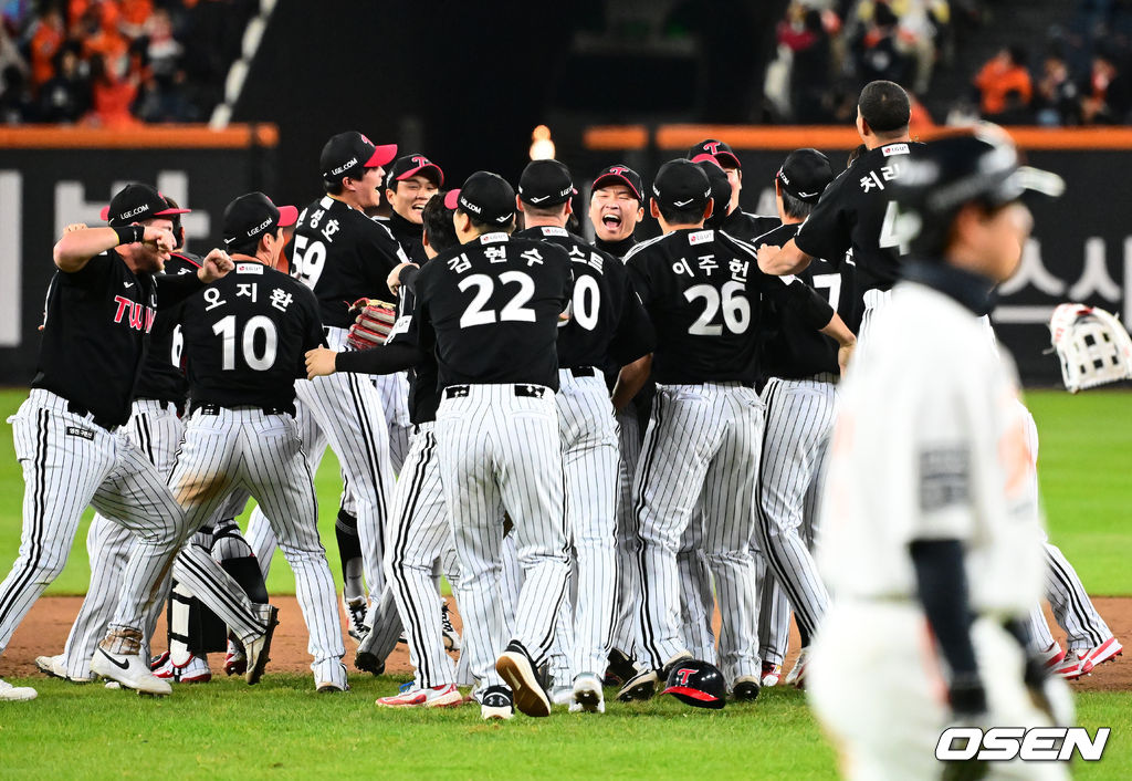 LG 선수들이 우승을 확정 지으며 기뻐하고 있다. 2025.10.31 /jpnews@osen.co.kr