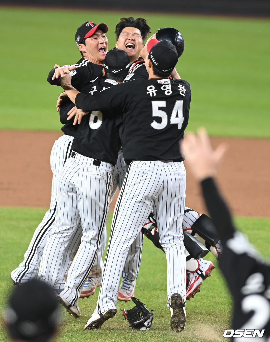 LG 선수들이 마운드에 모여 승리의 기쁨을 나누고 있다. 2025.10.31/spjj@osen.co.kr