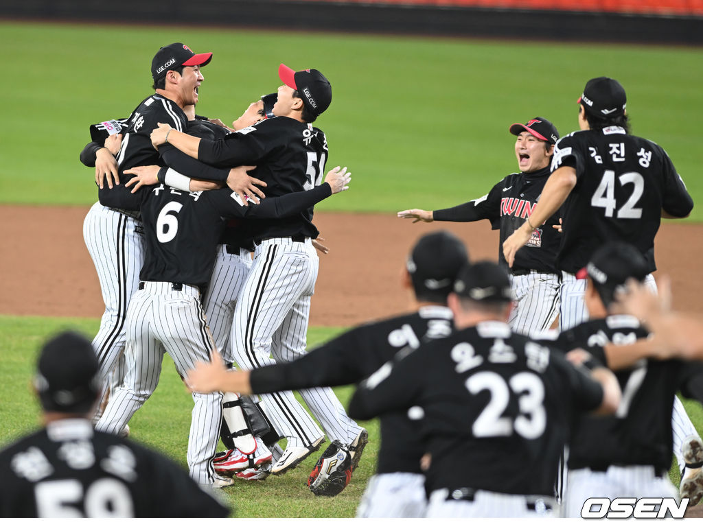 LG 선수들이 마운드에 모여 승리의 기쁨을 나누고 있다. 2025.10.31/spjj@osen.co.kr