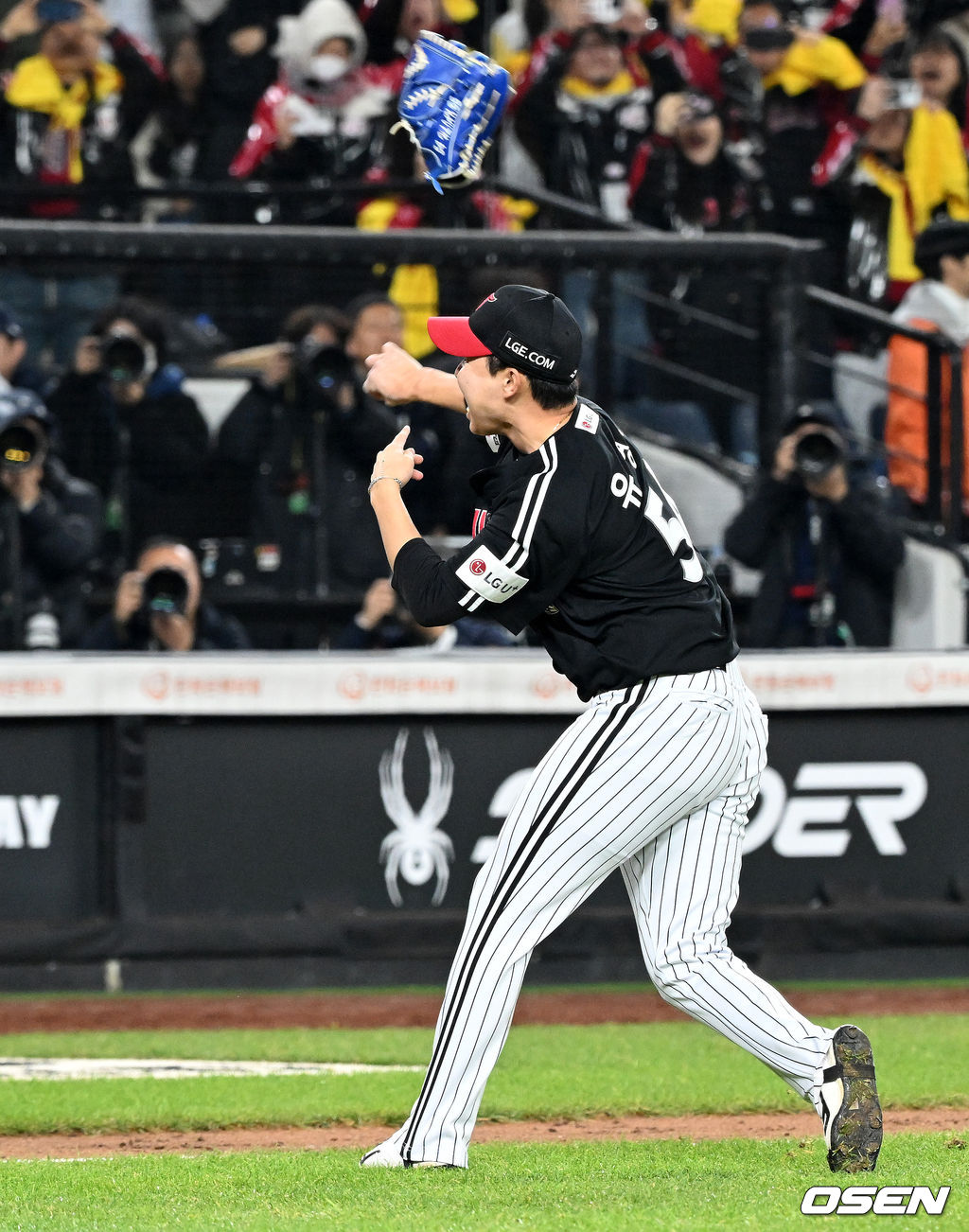 경기 종료 후 LG 유영찬이 우승의 기쁨을 나누고 있다. 2025.10.31 /sunday@osen.co.kr