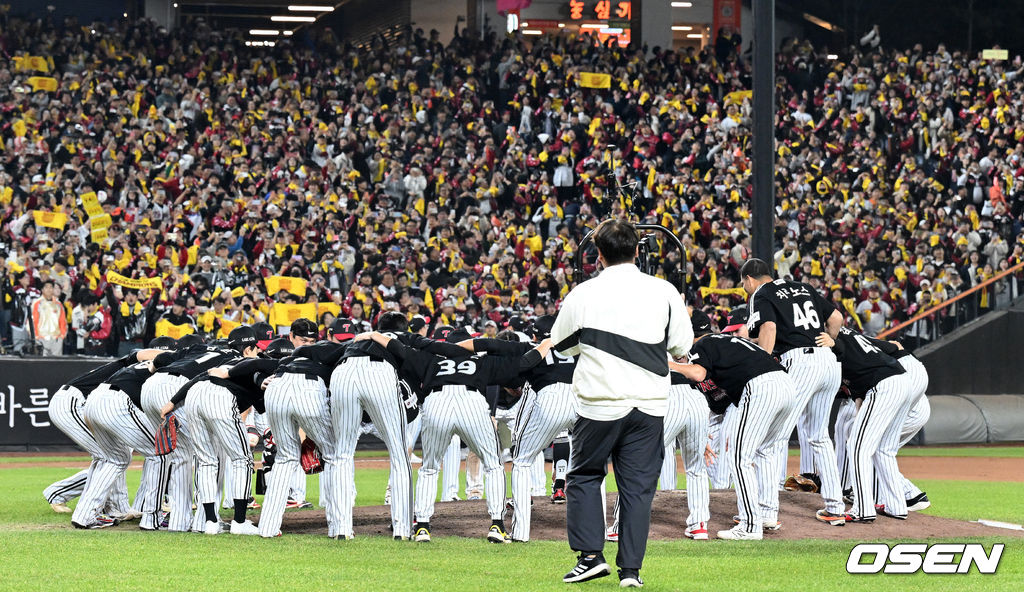 LG,'그라운드에서 우승 세리머니'