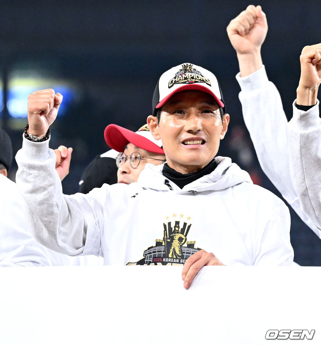 LG 염경엽 감독이 환호하고 있다. 2025.10.31 /sunday@osen.co.kr