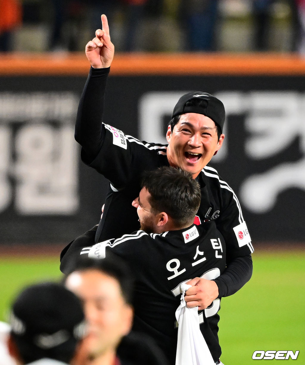LG 오지환, 오스틴이 우승을 기뻐하고 있다. 2025.10.31 /jpnews@osen.co.kr