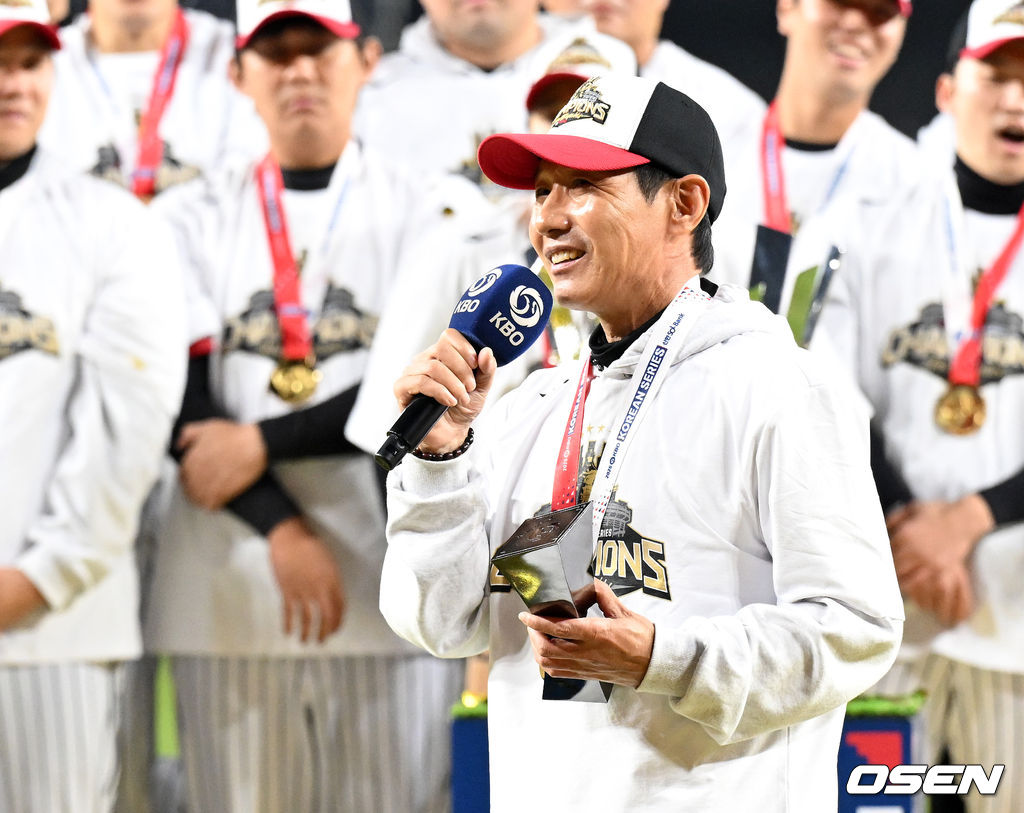 우승 감독상을 수상한 LG 염경엽 감독이 소감을 말하고 있다. 2025.10.31 /sunday@osen.co.kr