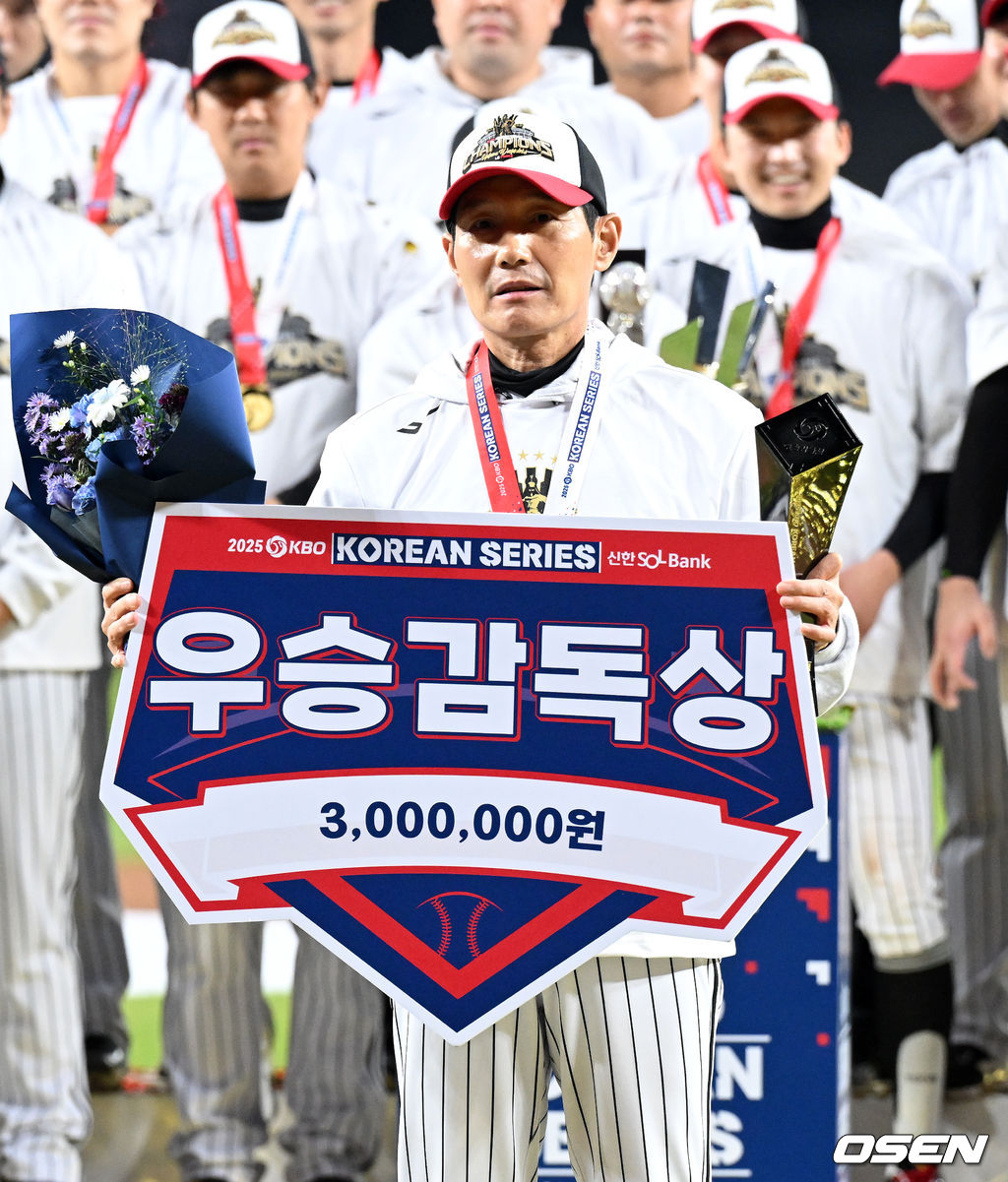 우승 감독상을 수상한 LG 염경엽 감독이 기념촬영을 하고 있다. 2025.10.31 /sunday@osen.co.kr