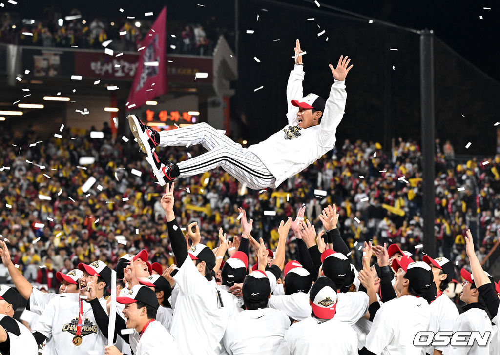 LG 염경엽 감독이 선수들에게 헹가래를 받고 있다. 2025.10.31 /sunday@osen.co.kr