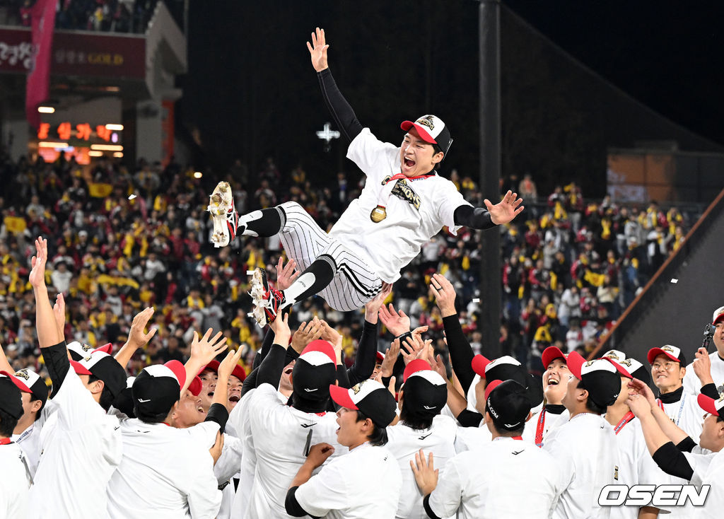 LG 박해민이 선수들에게 헹가래를 받고 있다. 2025.10.31 /sunday@osen.co.kr