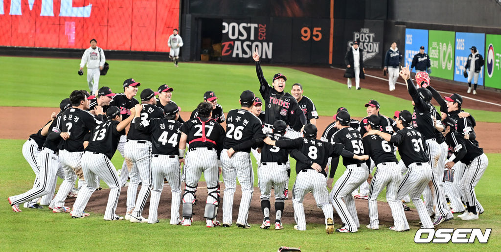 LG 선수들이 마운드에 모여 승리의 기쁨을 나누고 있다. 2025.10.31/spjj@osen.co.kr