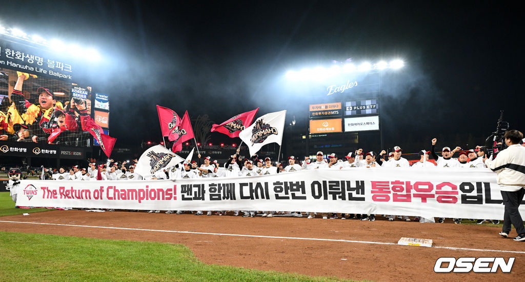 반면 2위 한화는 플레이오프를 거쳐 2006년 이후 19년 만에 한국시리즈 무대를 밟았지만, LG의 벽을 넘지 못하며 1999년 이후 26년 만에 통산 두 번째 우승이 무산됐다.
