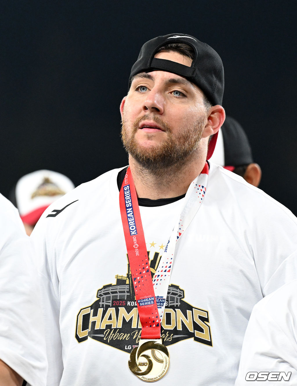 LG 오스틴이 우승 행사를 하고 있다. 2025.10.31 /sunday@osen.co.kr